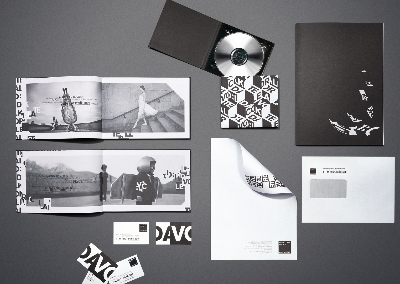 The visual appearance of this Swiss architecture studio is in line with both the corporate values and the owners’ high demands on design and structural engineering. Creativity, style and a sense for the extraordinary are placed centre stage. Walter Gropius’ quote that “designing means: dancing in shackles” inspired the corporate identity: architecture as dance of dimensions, confined only by physical laws and the requests of the client. The signet is formally flexible and brings dynamics to the design. It serves as a link between the spatial experience of the architecture and the two dimensional graphic design. Thus, the corporate design appeals just as versatile as the architecture itself.