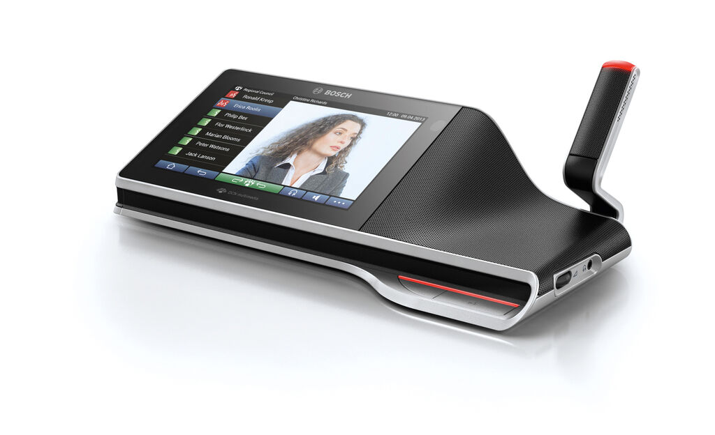 Das mit einem Internetanschluss ausgestattete Konferenzsystem DCN multimedia vereint mehrere Funktionen in einem Gerät. Es ermöglicht sowohl Audio- als auch Videoinhalte abzurufen. Ton und Klang bieten dabei eine hohe Qualität, Sprache klingt dank der im Mikrofon integrierten High-Directive-Technologie und des eingebauten Zwei-Wege-Lautsprechersystems natürlich. Das Bediengerät zeichnet sich durch ein elegantes, ergonomisch geformtes Design aus.