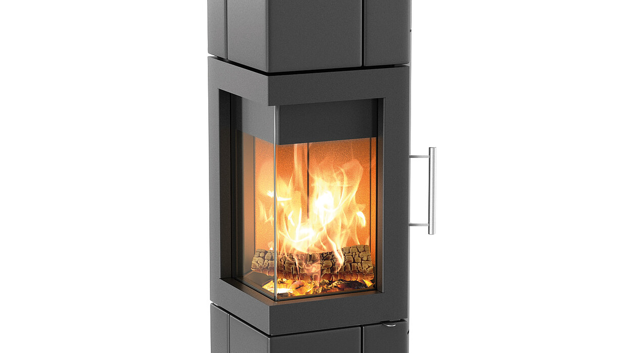 Der um fast 90 Grad drehbare Feuerraum mit seiner Panoramascheibe setzt beim Kaminofen Delhi das Flammenspiel perfekt in Szene. Ausgereifte Details sorgen für eine komfortable Bedienung: Die Feuerraumtür lässt sich im Stehen öffnen, der Türgriff bleibt dabei angenehm kühl. Dank des gusseisernen Feuerraumbodens mit drehbarem Feuerrost kann die Asche bequem entfernt werden. Für Luftsteuerung und Drehmechanismus gibt es einen einfach zu bedienenden Doppelfunktionsschieber.