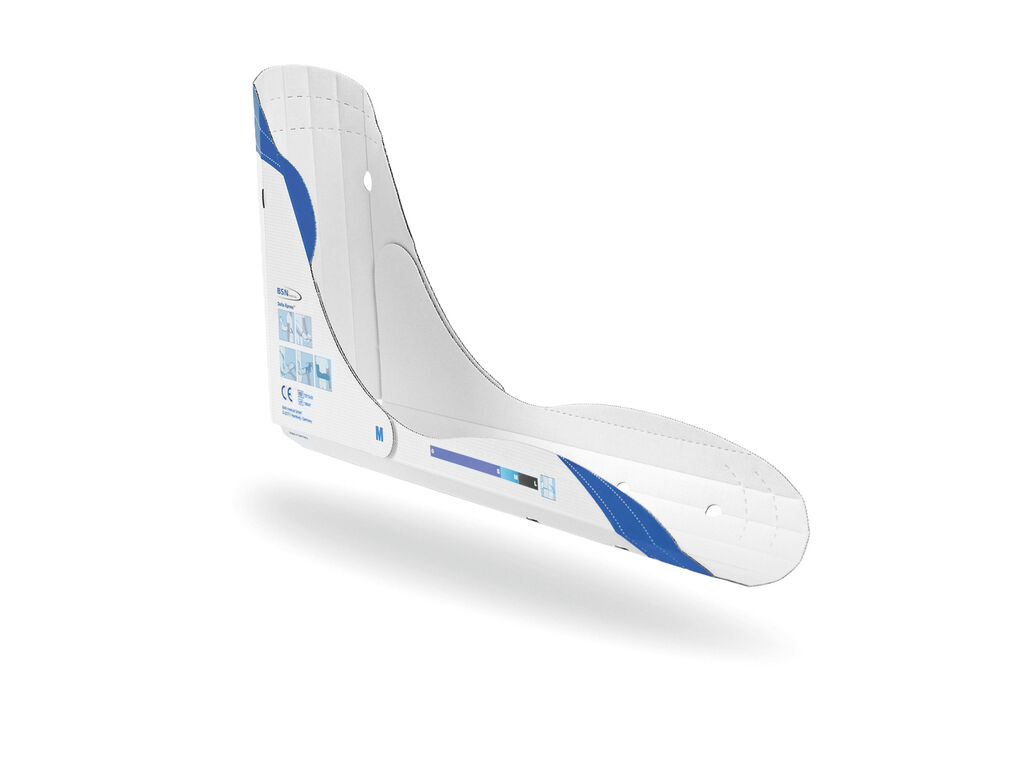 Delta-Xpress ist eine gebrauchsfertige Schiene, um das Ellbogengelenk kurzzeitig ruhig zu stellen und zu stabilisieren. Dank ihrer patentierten Ergonomie kann sie schnell und einfach angelegt werden. Eine Icongestützte Kurzanleitung samt Messleiste auf dem Produkt selbst erleichtert die Anwendung. Das Material ist luftdurchlässig, was durch ein Punktemuster optisch veranschaulicht wird. Die Schiene ist komplett recycelbar.