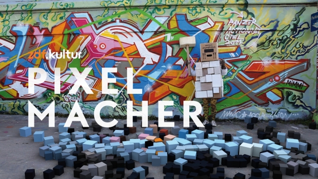 “Der Pixelmacher” (The Pixel-Maker) is a new format, running on the pop-culture-oriented TV channel zdf.kultur, which features reporting on all kinds of games, including new computer games. The show offers game-freaks a forum and reports news from the gaming scene. The con­cept of the show’s design has taken the format’s title literally and has created a mischievous pixel monster who pixels everything by smashing objects with a latex hammer, immediately turning them into big, colourful pixels. The opening credits and the entire design package follow the playful character of the channel’s design. The Pixel-Maker was realised on a low budget and filmed with a digital SLR camera.