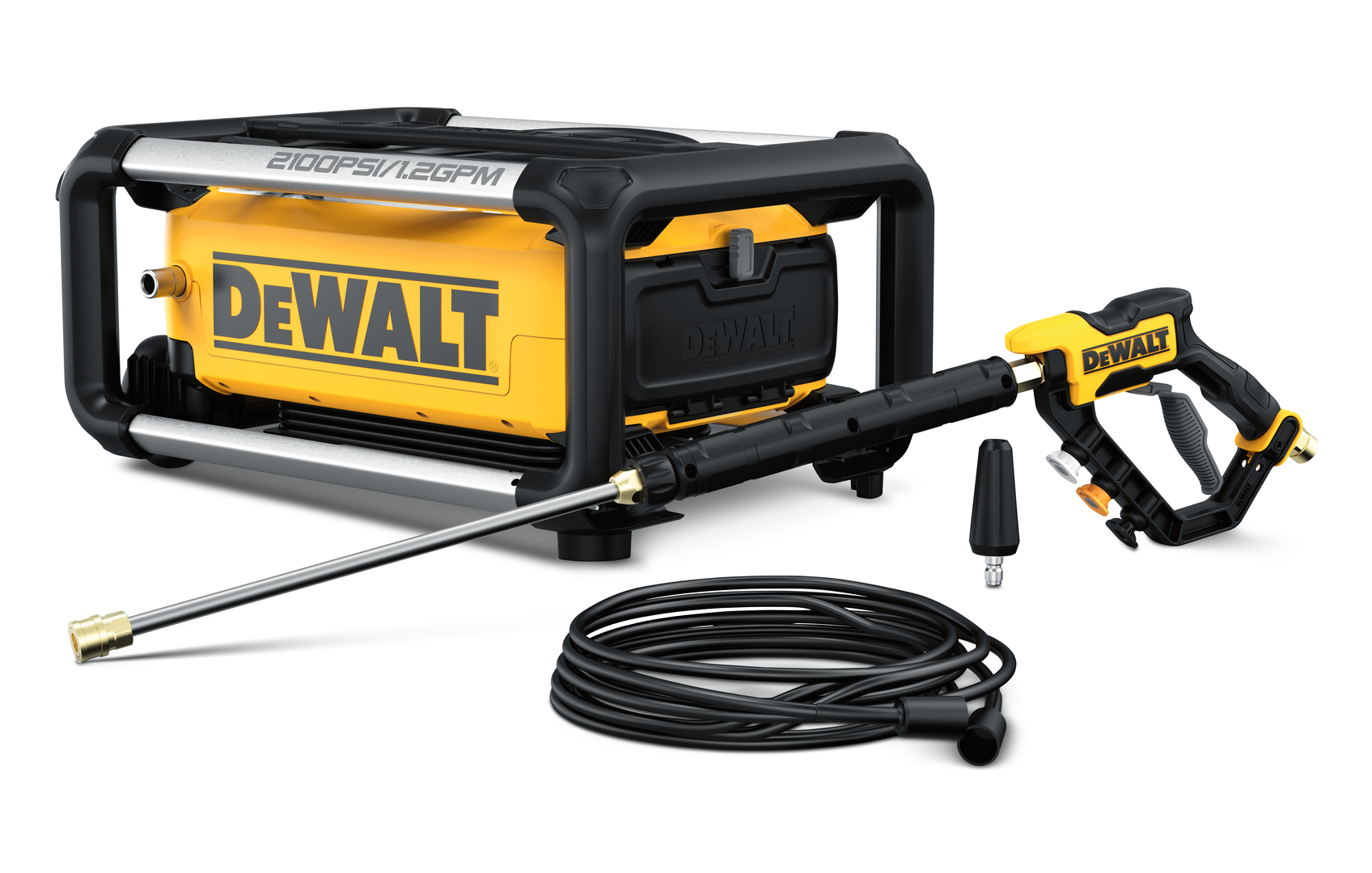 Dieser elektronische Hochdruckreiniger ist das Ergebnis einer benutzerzentrierten Produktentwicklung. Er lässt sich vielseitig nutzen und aufgrund seines stabilen Rahmens und seiner kompakten Bauweise platzsparend transportieren. Es kann sowohl vertikal als auch horizontal gelagert werden. Auch der Zugriff und das Verstauen der mitgelieferten Sprühlanze, der Düsen und des Schlauches ist komfortabel gestaltet. Mehrere Greifpunkte, Räder und der einklappbare Griff ermöglichen eine einfache Handhabung.