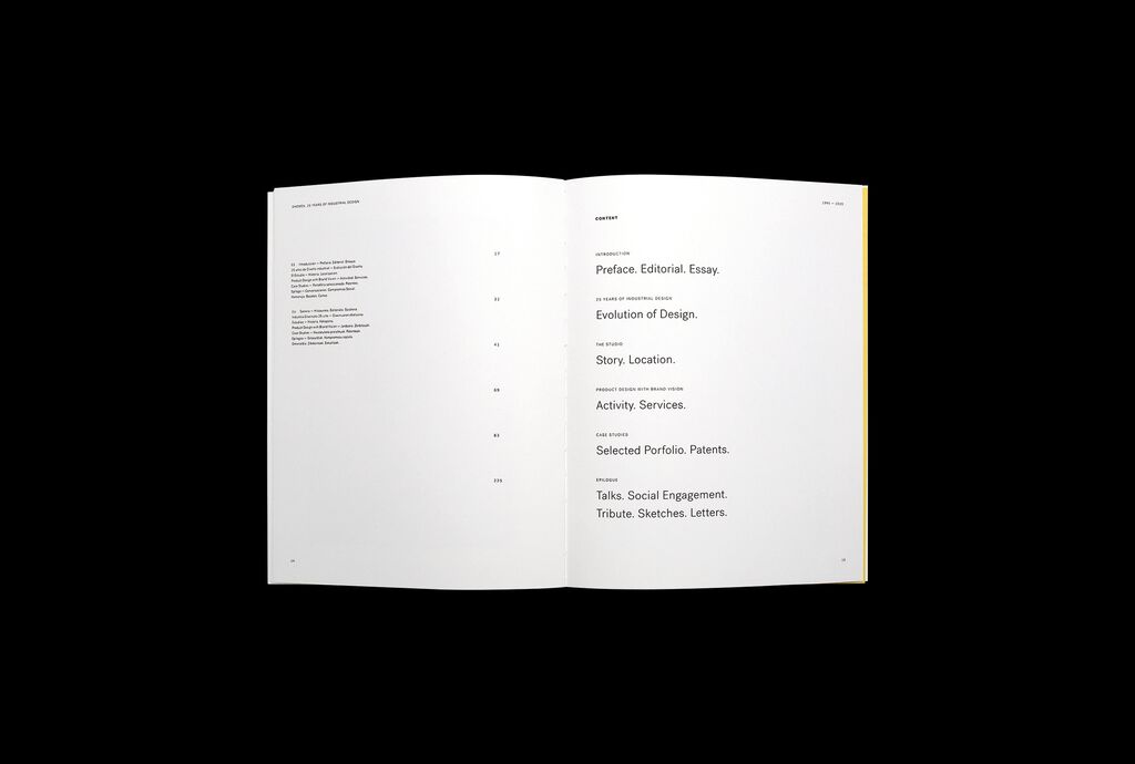 On the occasion of their 25th anniversary, this book sheds light on the past, present and future of an industrial design consultancy. It includes a selection of the studio’s 25 most iconic projects and various essays. The design of the publication is a tribute to elaborate craftsmanship and deliberately sophisticated. The application of specific craft skills in its production, such as thread binding with an open spine, as well as the use of high-quality paper communicate attention to detail.
