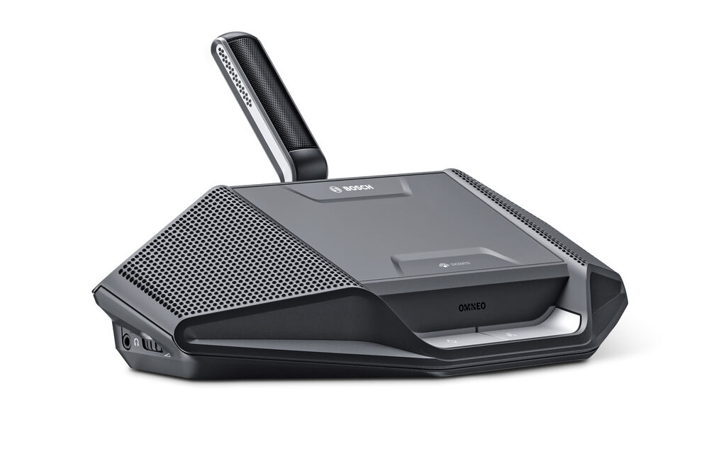 Das Konferenzgerät Dicentis ermöglicht störungsfreie und hoch flexible drahtlose Konferenzen. Die Diskussionseinheit wird vom Einzelbenutzer oder Vorsitzenden verwendet. Über den Wireless Access Point können Teilnehmer sprechen, eine Wortmeldung registrieren und dem aktiven Sprecher zuhören. Eine zeitlose Gestaltung in hochwertigen Materialien unterstreicht die seriöse Funktionalität des Geräts.