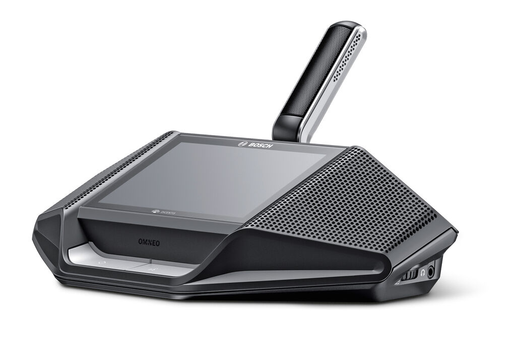 Dicentis in seiner erweiterten Ausführung verfügt über einen eleganten kapazitiven 4,3“-Touchscreen, ein diskretes hochdirektives Mikrofon und einen integrierten NFC-Reader zur Benutzeridentifikation. Der Touchscreen kann mit einem digitalen Firmenlogo versehen werden. Jedes Gerät lässt sich entweder als Diskussions- oder als Vorsitzendeneinheit nutzen. Hochwertige Materialien und edle Gestaltung passen sich gut in den Rahmen jeder Konferenz ein.