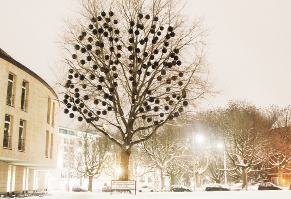 This campaign for the Barmer GEK health insurance points out the risks of nicotine consumption. The high-impact installation showing how smoking harms the lungs used a tree as a symbol for the green lung of a city. It was redesigned with a particularly eye-catching effect: a wintry sycamore tree was decorated with 150 black balls, symbolising the harmful tar in the pulmonary alveoli. The arrangement of the balls in form of a human lung together with compelling signs at the foot of the tree serves as an appeal to stop smoking at the turn of the year.