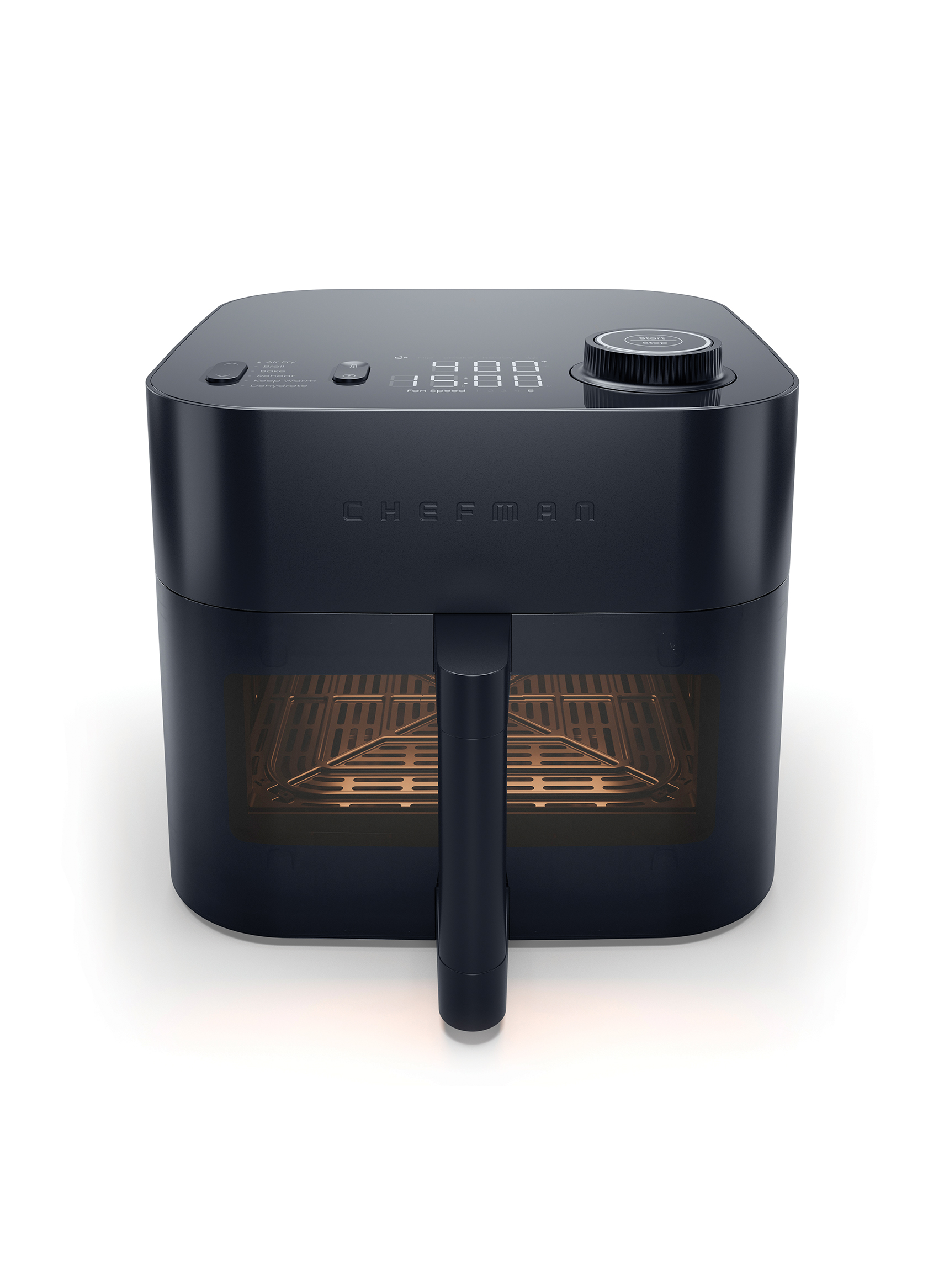 Introducing the Chefman® Dominator™, a revolution in kitchen efficiency. It is compact yet powerful and features a widened basket and a 3600rpm DC brushless motor for perfectly crispy dishes. The large viewing window and halogen light let you check on your food without interruption. With an intuitive user interface, easy-to-use knob and a minimalist brutalist design, the DominatorTM combines ease of use with a sophisticated, modern aesthetic. Perfect for cooks of all skill levels, the Chefman® DominatorTM is the future of air frying, seamlessly blending performance and style.