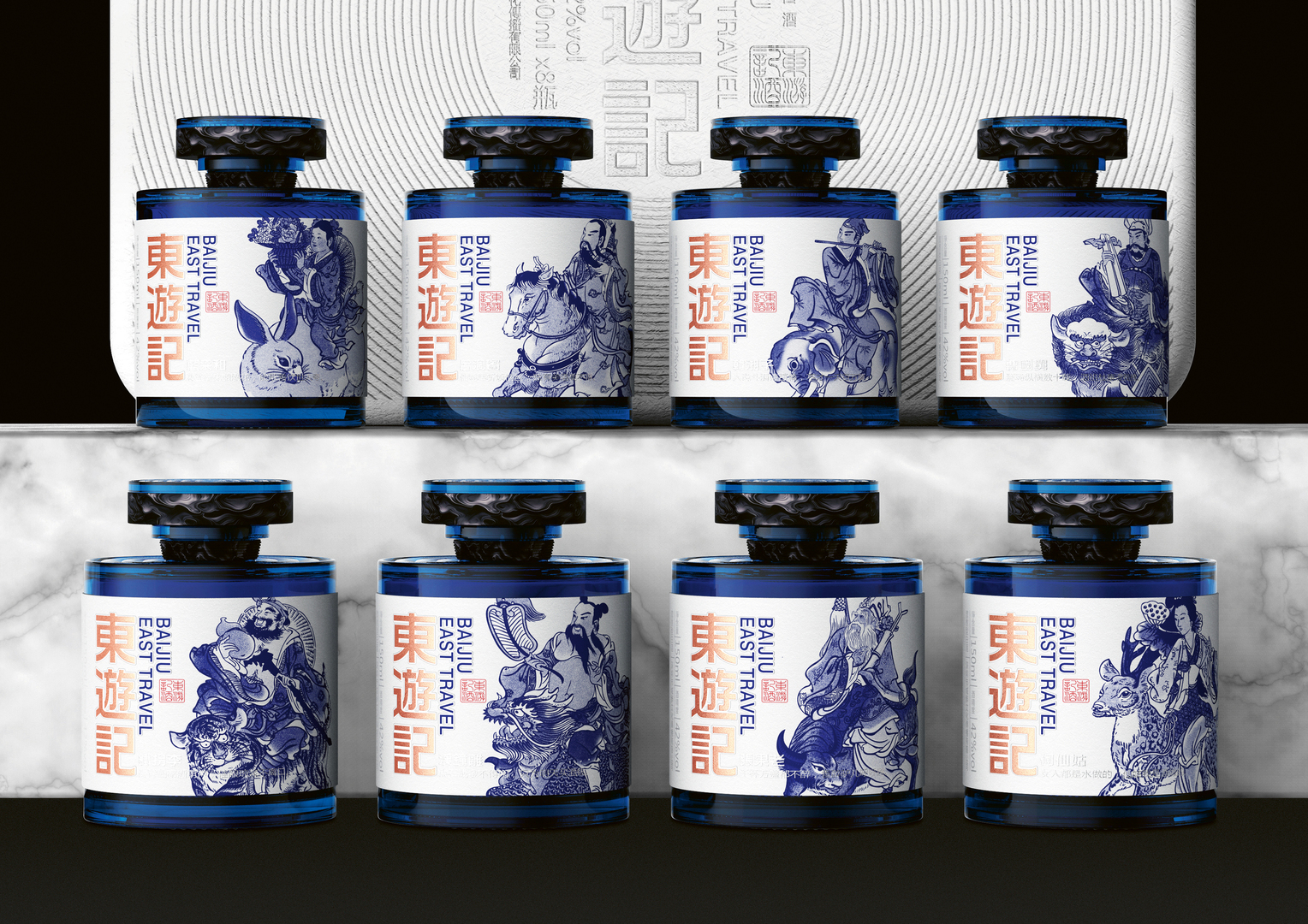 The Guangxi region is known for its sugar cane production. It is this plant, rather than wheat or rice, which is used as a raw material in this baijiu, a type of Chinese liquor. It gives the drink a sweetness popular with younger consumers in particular. The design of the bottle uses the colours blue and white to echo the natural environment in Guangxi. Its label shows graphical elements inspired by the well-known legend “The Eight Immortals Cross the Sea”. The easy-to-carry outer packaging is made from pressed bagasse, which decomposes naturally and is thus friendly to the environment.