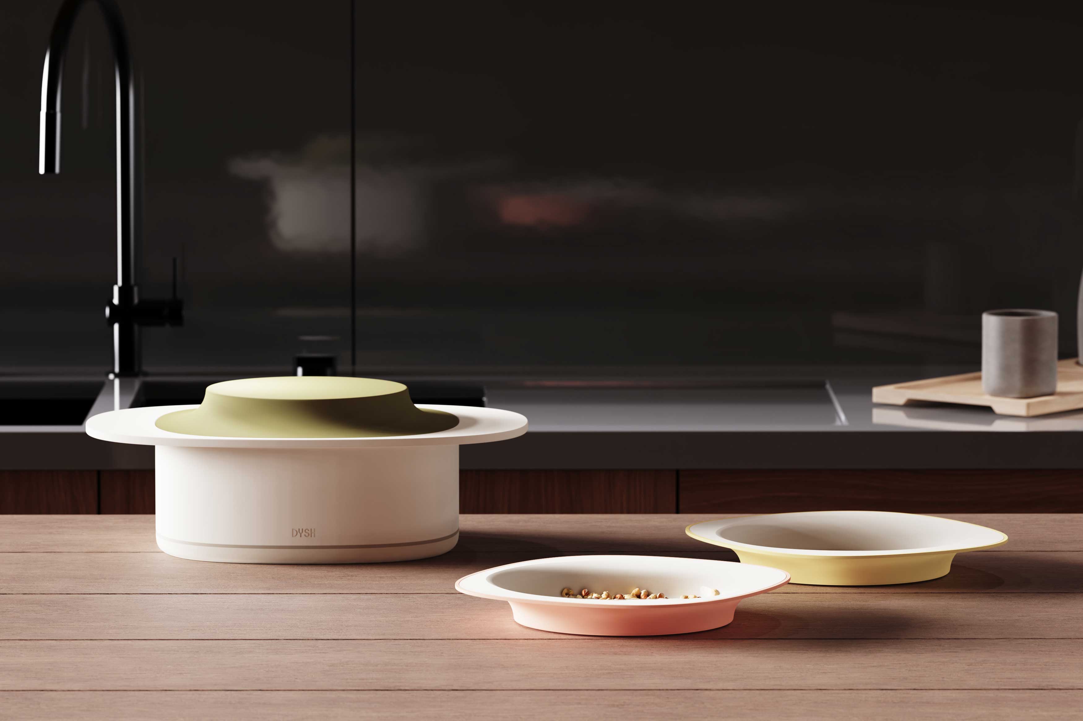 DYSH is a meal-kit cooking pan that streamlines the transition from cooking to eating and cleaning. It includes a pot and lid, a handle, and an induction base. The lid doubles as a plate to minimise dishwashing, and the two-way handle provides stability and controls the multicooker. Magnetic connections make DYSH lighter, safer, and easier to clean, ensuring a hassle-free experience.