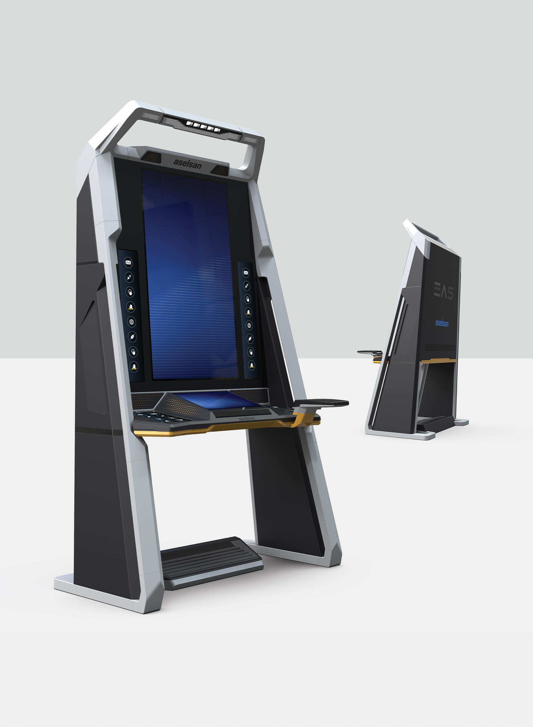 EAS is a versatile modular operator’s console suitable for various sectors. Its customisable features include digital keypads, a centre screen, a joystick, additional screens, and arm support for ergonomic use. Sustainable material options reduce environmental impact. Interchangeable parts benefit both manufacturers and users, lowering costs and increasing adaptability. EAS provides high-precision control with optional pedals and steering wheel for simulations. Red Dot Award: Design Concept | Ready For Market | Computer and Information Technology