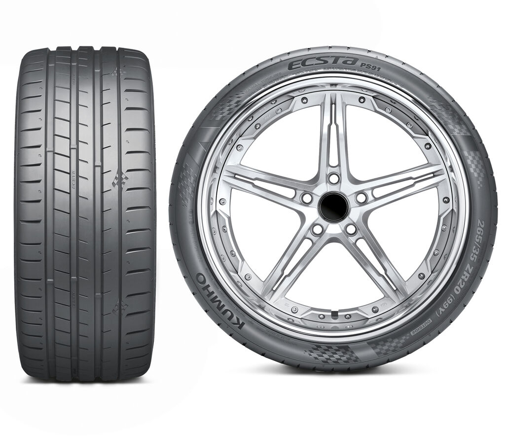 Der Ecsta PS91 ist ein rennstreckentauglicher Ultra-Hochleistungsreifen für Sportwagen. Haftung, Bremsverhalten und Hochgeschwindigkeitsbelastbarkeit wurden für einen höheren Fahrkomfort auf normalen Straßen optimiert. Dank des Einsatzes von Fertigungstechniken für Rennsportreifen bietet der Ecsta PS91 ein sicheres Kurvenverhalten und Stabilität bei hohen Geschwindigkeiten. Rennflaggen-Symbole auf Flanke und Lauffläche demonstrieren Sportlichkeit.