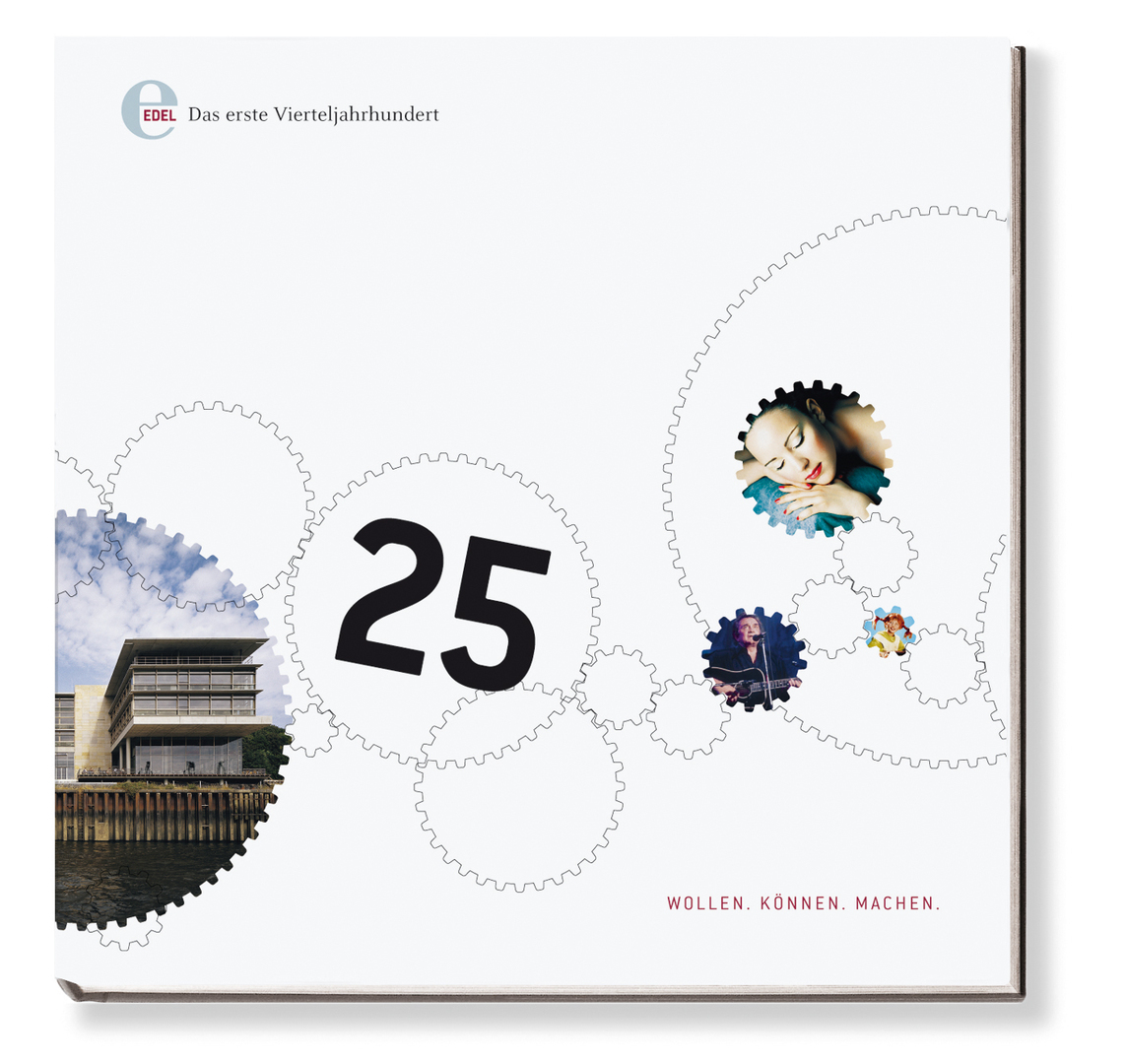 These two commemorative publications were issued on the occasions of the anniversaries of an entertainment company and its subsidiary. The story of the respective company is told – through both images and sound – with reports and numerous colour photographs. In order to connect the two books with one another and to symbolise the collaboration between the two companies, the design uses a cogwheel as a recurring visual motif. The commemorative publications come in a slipcase and feature bookmark ribbons.