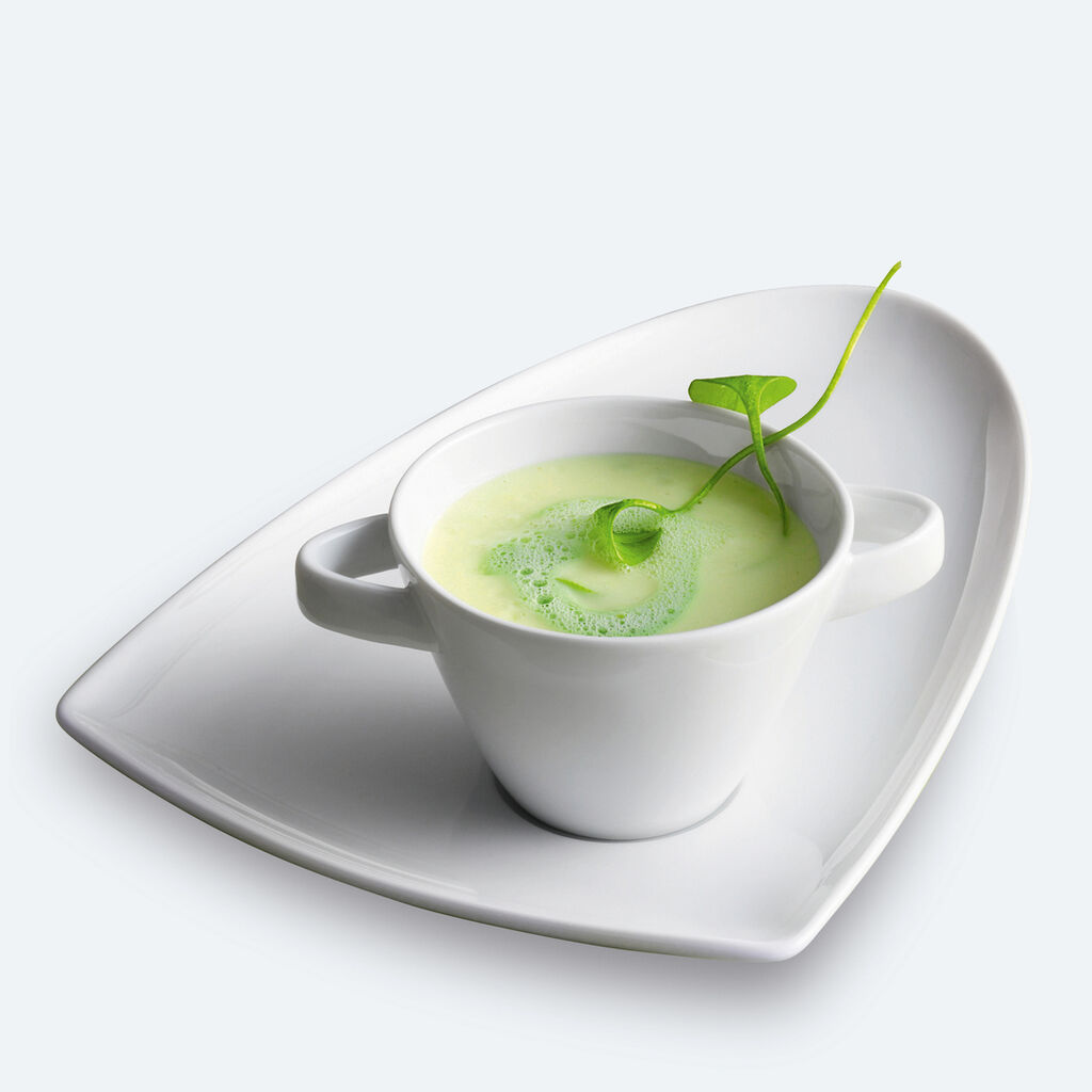 Um den hohen Qualitätsanforderungen der internationalen Gastronomie zu entsprechen, wird die Porzellanserie Enjoy aus speziellem Hartporzellan hergestellt. Ihre geschwungene Formensprache erzeugt eine angenehme Haptik und garantiert eine gute Serviertauglichkeit.