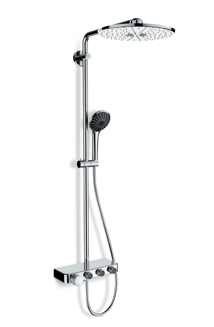 Mit seinen dunkelgrauen Oberflächen setzt das Duschsystem Euphoria SmartControl 310 Hard Graphite das moderne Bad gekonnt in Szene. Für eine intuitive Bedienbarkeit sorgen die mit einfachen Symbolen versehenen Drehregler an der Front des Thermostats. Dank der integrierten Push-and-Turn-Technologie lassen sich Wasserfluss, Strahlstärke und Temperatur komfortabel und präzise regeln. Direkt über dem Bedienelement ist die Duschablage EasyReach angebracht, auf der Kosmetika platziert werden können.