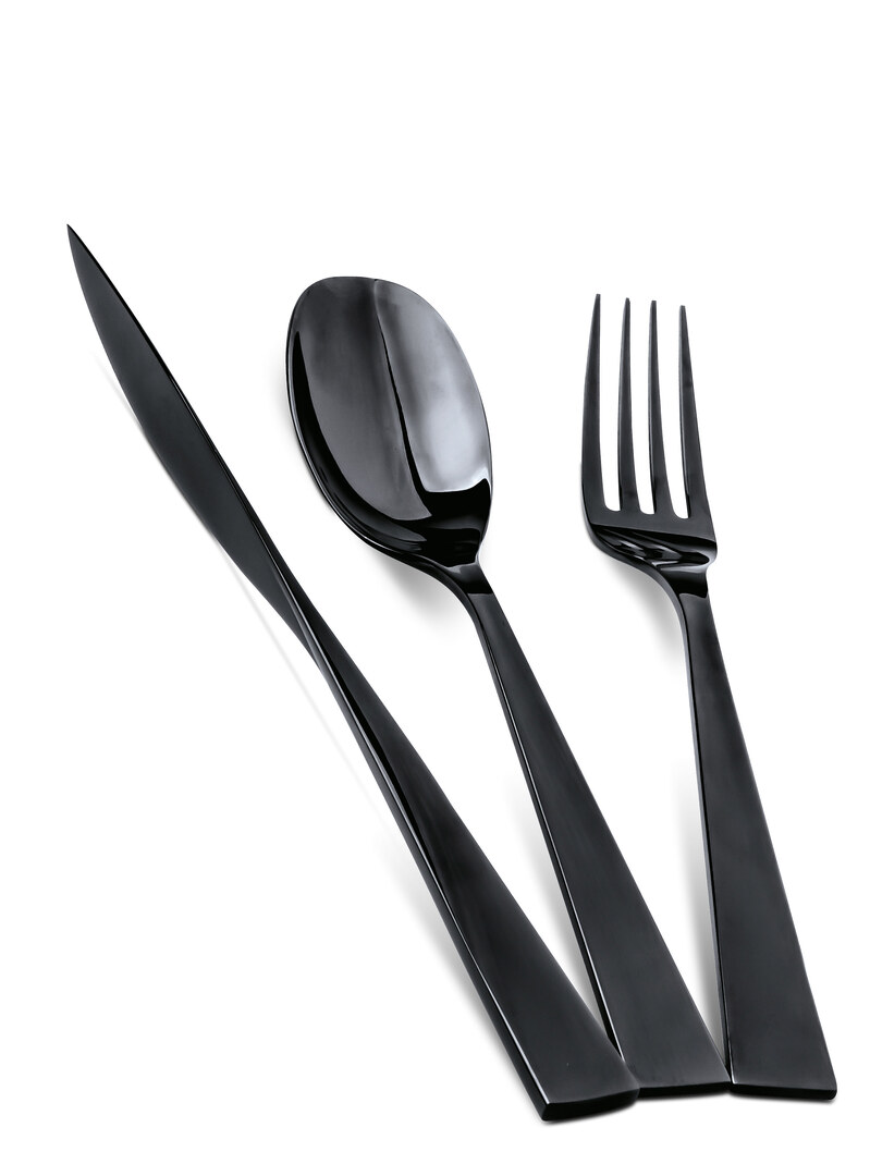 Inspiriert vom Mount Everest zeigt der Griff des gleichnamigen Bestecks eine dreieckige Kontur, die sich nach oben hin verjüngt. Die geschwungene Fortführung bis zur Messerspitze folgt dem Gestaltungsgrundsatz ausgewogener Proportionen. Eine blauschwarze Färbung des Bestecks soll Mysterien und Geheimnisse symbo-lisieren, die im Dunkeln verborgen sind. Auf diese Weise kann Everest zu einer wirkungsvollen Tischgestaltung beitragen.