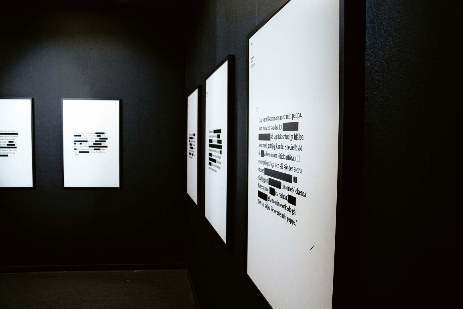 The way in which the reduced black-and-white design concept of this exhibition plays with the meaning of blacked out content in the quotes from Holocaust survivors is downright outstanding. Just like active remembrance can fade away, so can text quickly become meaningless or corrupted. Featuring blacked out text as QR code effectively turns the hidden words into a key to knowledge – another clever congruence of idea and content, which communicates the topic in a shocking yet extremely successful manner.