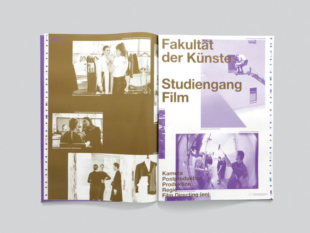 The catalogue for the newly founded Faculty of Arts at Macromedia University of Applied Sciences presents the artistic and design works of the different programmes. Printed in A3 format on high-gloss paper with three special metallic colours, it comprises folded-up DIN A1 posters printed on both sides that can also be hung on the walls of the university’s different campuses in Germany. The design thus succeeded in satisfying the narrative and sequential requirements for a brochure while also accounting for the requirements for poster design.