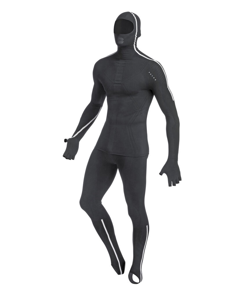 FALKE Skiing Air Insulation ist ein neuartiges Produkt durch die Kombination zweier Technologien: Raschel Wirkware, die es im Vergleich zur traditionellen Seamless Technologie ermöglicht, offene Mesh- Ventilationszonen – nahezu ohne Limit – zu wirken, und die neueste Bonding Technologie, durch die die Produkte komplett nahtfrei sind. Die Wäsche ist sehr weich, hochelastisch und aus einem Infrarotgarn für optimale Thermoregulierung gefertigt. Die Besonderheit des Produkts ist die individuelle Gestaltung: Handschuhe, Sturmhaube oder auch Teile des Beins lassen sich einfach abschneiden.