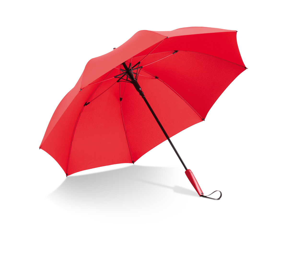 Spitze, Bezug, Griff und Fiberglasschienen dieses Schirms wurden farblich aufeinander abgestimmt und verleihen dem Objekt eine schlichte Eleganz. Eyecatcher sind die speziellen Formen von Griff und Spitze sowie die Silikon-Trageschlaufe am Griff. Der Schirm öffnet per Knopfdruck automatisch und bietet ein hochwertiges Windproof-System. Mit 110 cm Durchmesser ist er größer als normale Stockschirme und bietet dadurch verbesserten Schutz.