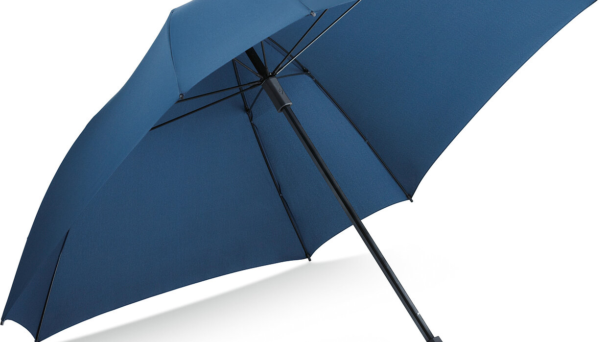 Der Schirm stellt mit seinen farbigen Akzenten die gelungene Neuinterpretation eines klassischen Designs dar. Zudem punktet er mit nachhaltig hergestelltem Material.