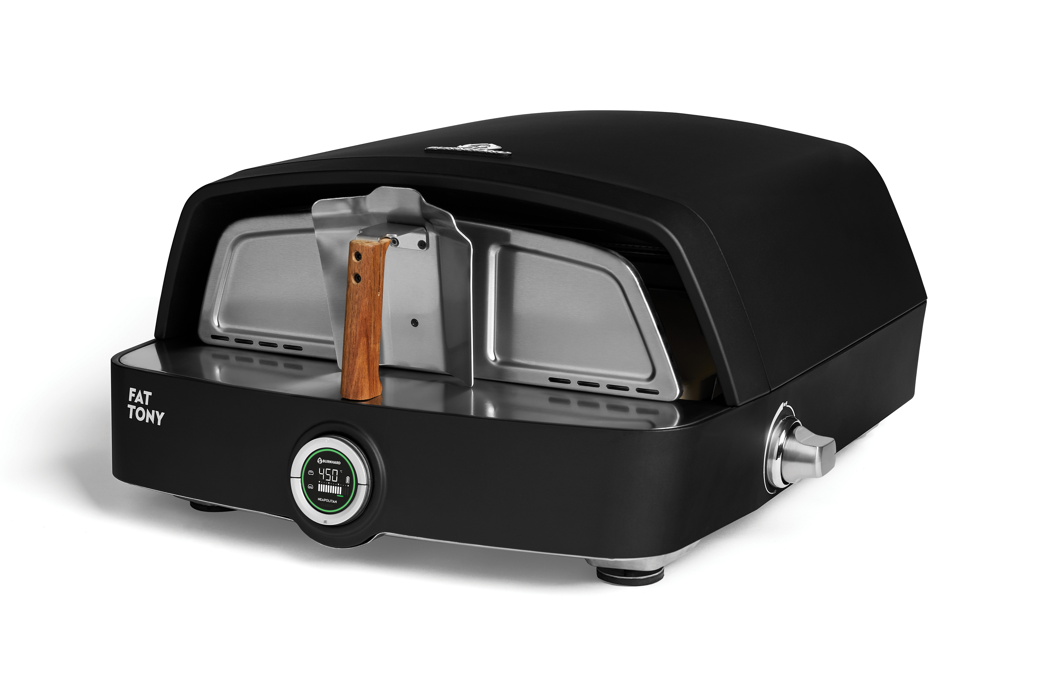 FAT TONY is a gas pizza oven with precise temperature control for baking perfect Neapolitan pizzas with crispy, airy dough and perfectly melted cheese. It features dual-zone heat monitoring, an L-shaped burner, and a heat shield for consistent temperatures. The oven reaches optimal baking temperature in 20 minutes, and its 20-mm thick pizza stone retains heat for multiple bakes. Red Dot Award: Design Concept | Ready For Market | Garden Appliances and Garden Equipment