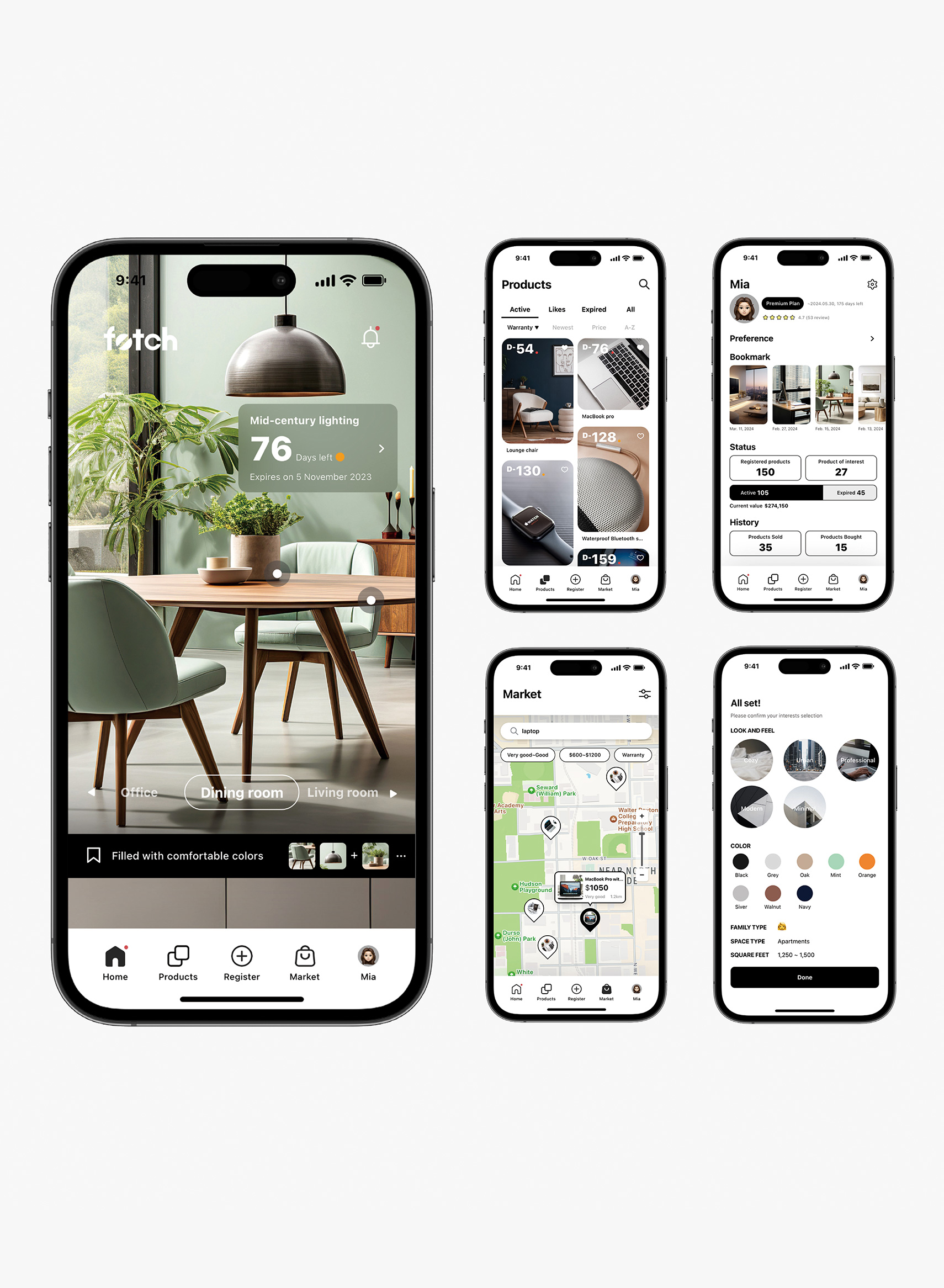 FETCH revolutionises second-hand shopping by integrating sustainable e-commerce, AI recommendations, and efficient product management. This user-centric platform simplifies buying, selling, and trading with AI-generated images for product visualisation and a seamless warranty system. Users can easily list items and transfer warranty details with a tap. FETCH promotes sustainability and affordability, addressing challenges in product acquisition, price negotiations, and safety. Red Dot Award: Design Concept | Concept | Interaction, UI and User Experience