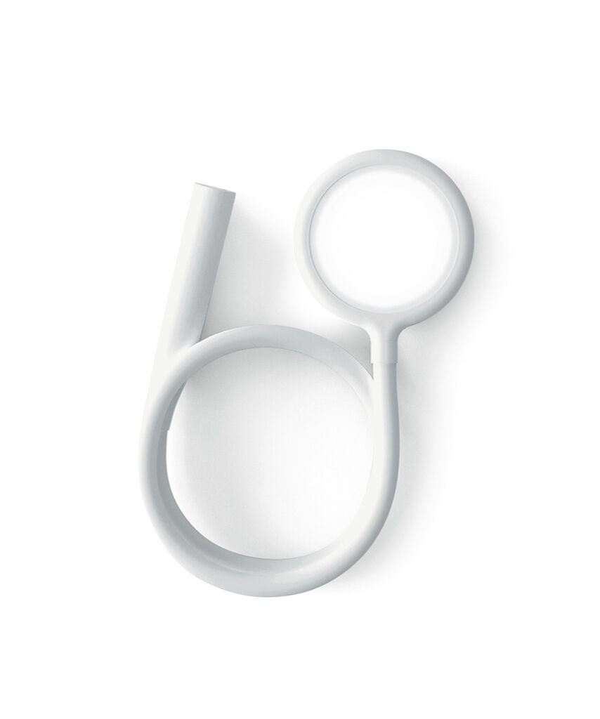 FLEXO ist eine mobile Leuchte, deren schlauchartiger Arm sich flexibel zu einem Standfuß, einer Schlaufe oder einem stielförmigen Griff formen lässt. Sie ist sowohl für den Schreibtisch als auch als tragbare Leuchte zur gezielten Ausleuchtung von Arbeitsbereichen geeignet. Der im Leuchtenarm integrierte 1200mAh-Akku lässt sich über eine USB-Buxe aufladen. Darunter befindet sich eine flächenbündig integrierte Ein- und Ausschalttaste. Die Leuchte ist in Weiß, Schwarz oder Rot erhältlich.