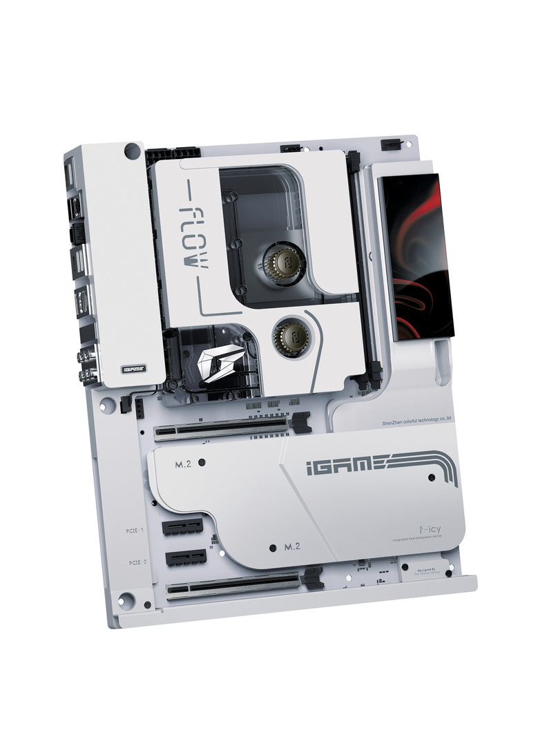 Flow motherboards include water-cooling solutions for the CPU and power supply. It has two memory slots and a one-button overclocking key on the horizontal side slot to effectively improve thermal armour coverage and heat dissipation performance. The portable operation can immediately achieve overclocking. It supports a split water-cooled chassis, and the entire machine uses water-cooled heat dissipation devices. When compared to traditional air-cooled cooling systems, the experimental use of water-cooled heat dissipation greatly improves the upper limit of heat dissipation under the same volume, which enhances product performance and reduces working energy consumption.