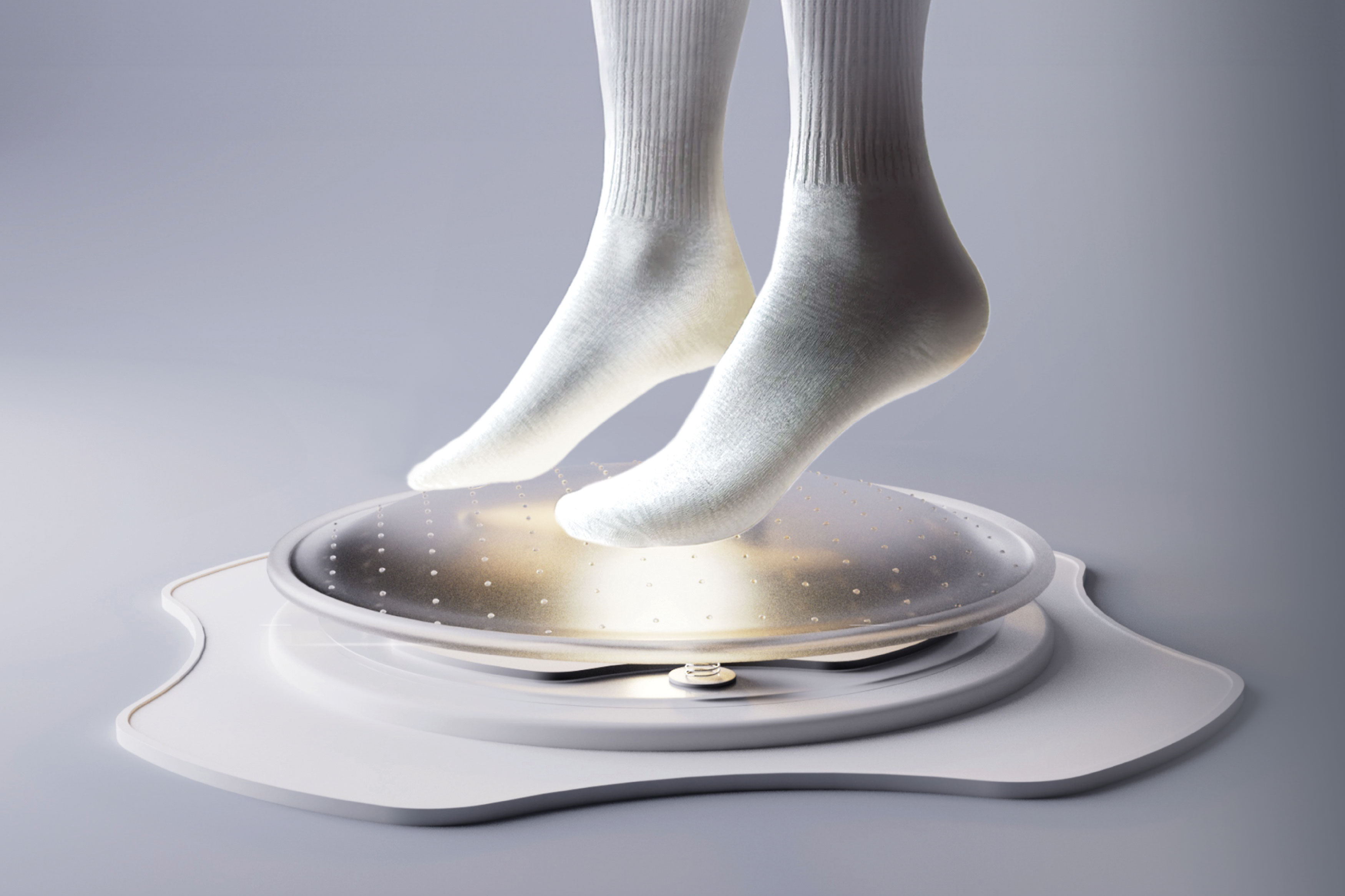 FOOTICE addresses the health impacts of prolonged sitting with real-time posture monitoring and adjustment through simple foot positioning while seated. The footrest is integrated with a desktop app that communicates posture information via UI colour and tilt changes. Regular notifications prompt periodic posture checks and corrections. Prioritising user experience, FOOTICE fosters healthy habits to maintain spinal health.