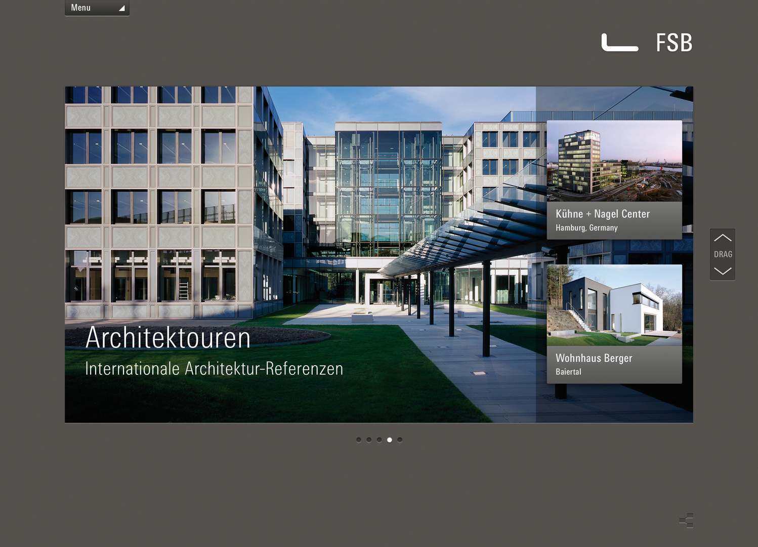 With its reduced design approach, the new FSB website builds on the visual identity created by Otl Aicher and translates it into a contemporary design in both form and function. Aiming to provide information for the main target groups, architects and specialist planners, the website is supported by a responsive design optimised for touchscreen use. Lavish high-resolution images deliver a tangible experience of the FSB product worlds, while the simple navigational structure provides direct access to the desired content.