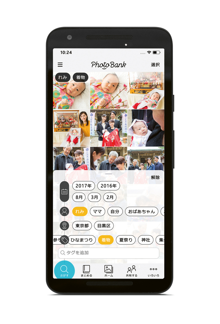 This photographic cloud service converts and preserves photos taken with smartphones and digital cameras, as well as filmed scenes and print photos, as digital data. Under the design concept of “Encounter”, the aim of this app is to enable people to re-experience life moments. As a service that prevents precious photos from being forgotten, it incorporates pictures of great moments and relationships in living spaces. An environment which integrates AI, automatic tags shown in text for easy editing, user-generated tags and tag-filtered searches makes it easy for users to find whatever they are looking for at any time.