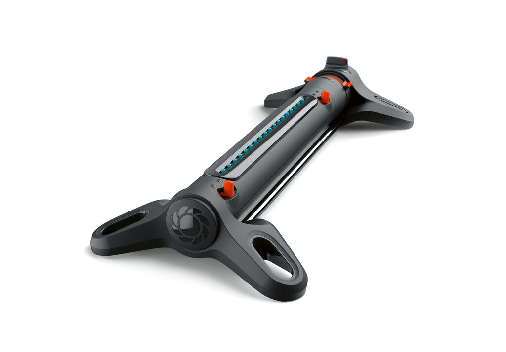 Einem modularen Gestaltungsansatz folgend, wird diese Viereckregner-Serie aus produktlinienübergreifenden Gleichteilen in Deutschland gefertigt. Erhältlich in den Varianten S, M und L ermöglichen sie eine präzise Bewässerung von Rasenflächen bis zu 350 qm. Reichweite und Breite der Bewässerung sowie die Durchflussmenge lassen sich über klar gekennzeichnete Bedienelemente intuitiv einstellen. Der zur Reinigung herausnehmbare Filter ist ebenfalls farblich hervorgehoben. Die prägnanten Fußelemente bieten hohe Standfestigkeit.