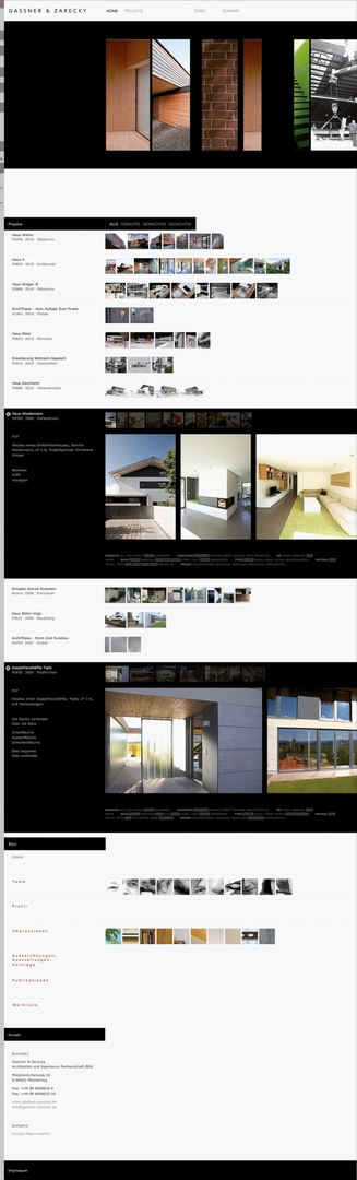 The new website for the architecture and engineering firm Gassner & Zarecky utilises the bar code as a striking leitmotif which consequently characterises the look and feel of the layout. The individual projects receive their distinctive and unique code via individual horizontal filmstrips. On their way through the website, users create their own individual traces in form of a vertical code. The unconventionally structured website displays its entire content on one page and is therefore particularly suitable for iPads and other tablet computers.