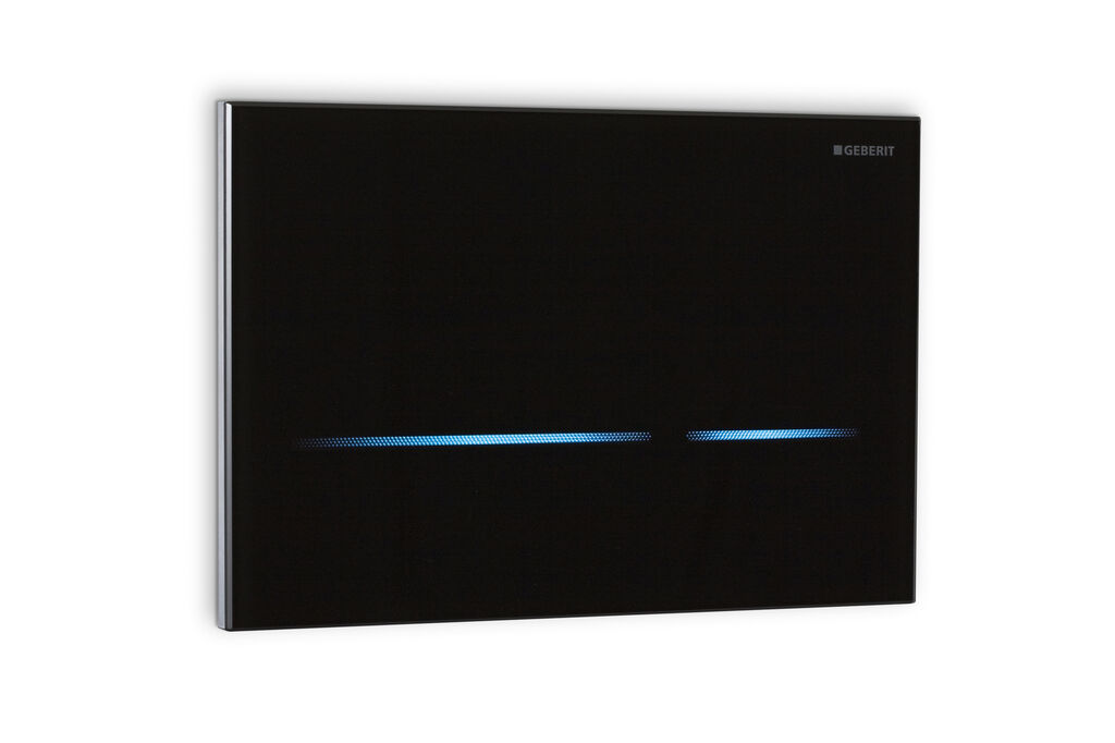 Geberit Sigma80 ist eine berührungslose WC-Betätigungsplatte. Die Sensorik erkennt die anwesende Person und illuminiert die Tastenfelder der 2-Mengen-Spülung. Spülbefehle werden mit dem hellen Aufleuchten des gewählten Tastenfelds quittiert. Für die passende Lichtstimmung steht eine Palette von fünf Beleuchtungsfarben zur Auswahl. Zusätzlich bietet die Beleuchtung eine Orientierungshilfe beim Annähern an die WC-Keramik im Dunkeln.