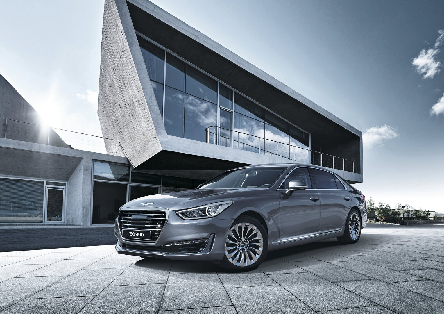 Der Genesis G90 ist als Limousine für das Premiumsegment konzipiert und mit einer Formensprache entworfen, die als „Athletische Eleganz“ bezeichnet wird. Die Front des G90 ist durch Gestaltungsmerkmale der Genesis-Familie wie den „Crest“-Grill und das Markenemblem geprägt. Die Motor-haube ist langgezogen, kurze Überhänge betonen die Heckantrieb-Architektur. Im Innenraum kommen hochwertige Materialien wie Leder für die Sitze zum Einsatz und verleihen der Limousine eine luxuriöse Anmutung. Das Cockpit ist ergonomisch und bedienfreundlich gestaltet.