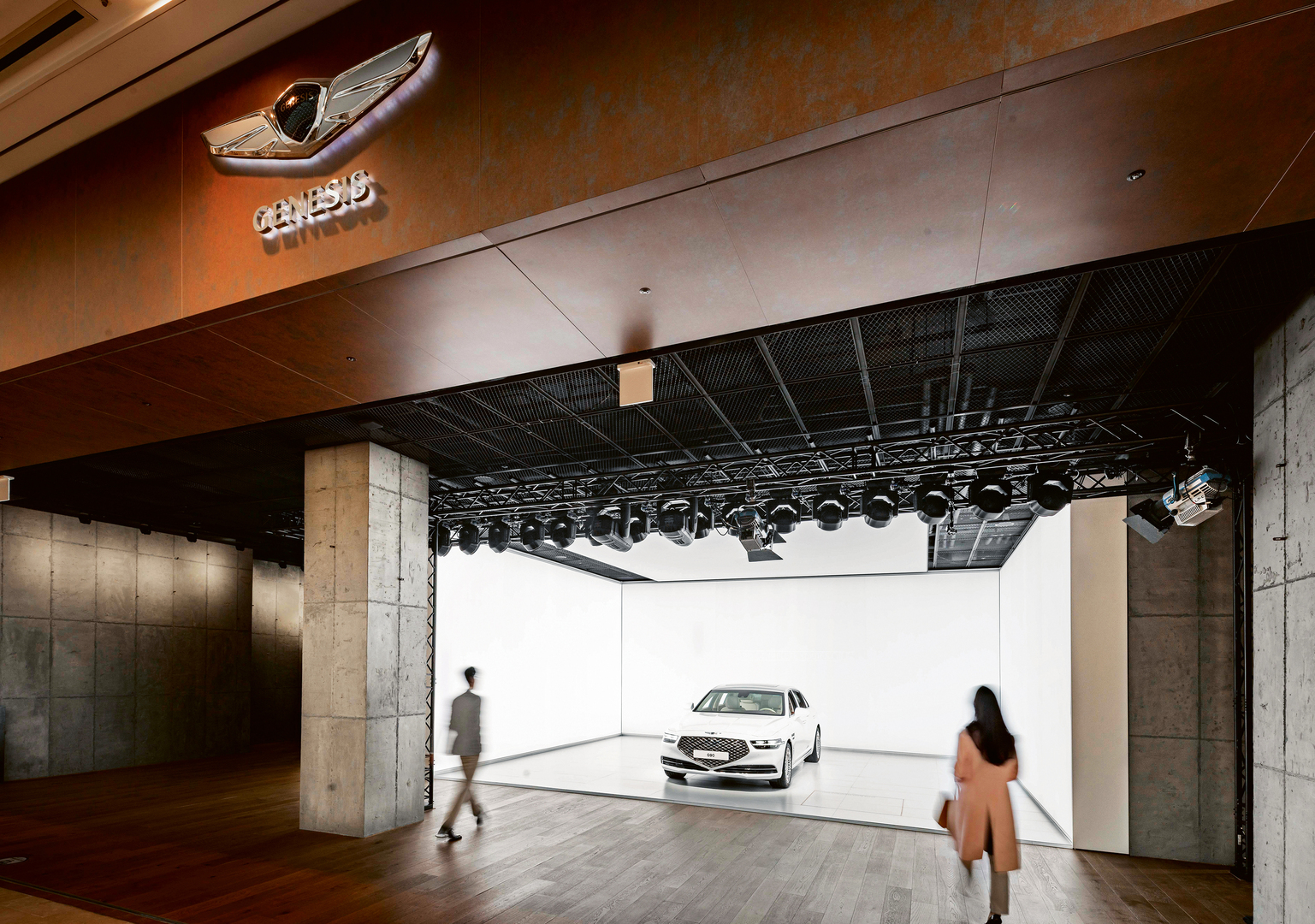 The interactive media project and exhibition “Complete Your Style: G90” celebrated the brand’s luxury flagship sedan G90. It took place at the Genesis Studio in Hanam on the outskirts of Seoul, South Korea. Realising a barrier-free environment that allowed visitors to freely experience the design of the G90, the aim was to satisfy the needs of a diverse range of consumers. When a person stepped into the specially built zone in the centre of the studio, the surrounding walls of the zone immediately adopted the colour of that person’s outfit, which was automatically recognised by a sensor.