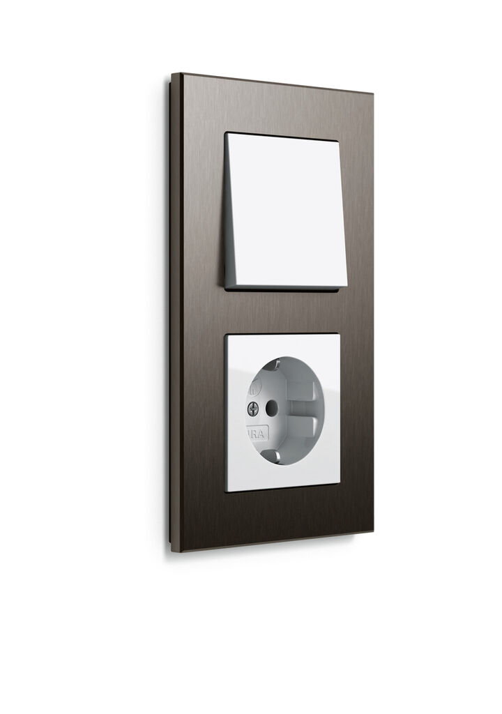 Schwarz ist ein Klassiker des Interior Designs. Gira Esprit bietet hierfür eine anspruchsvolle neue Lösung: Rahmen aus eloxiertem Aluminium in mattem Schwarz. Die natürliche Schliffstruktur des Materials bleibt dabei erhalten. Unterschiedliche Brauntöne sind ein aktueller Trend in modernen Farbkonzepten der gehobenen Innenarchitektur. Gira greift diesen Trend im Schalterprogramm Gira Esprit mit Rahmen aus eloxiertem Aluminium in mattem Braun auf.