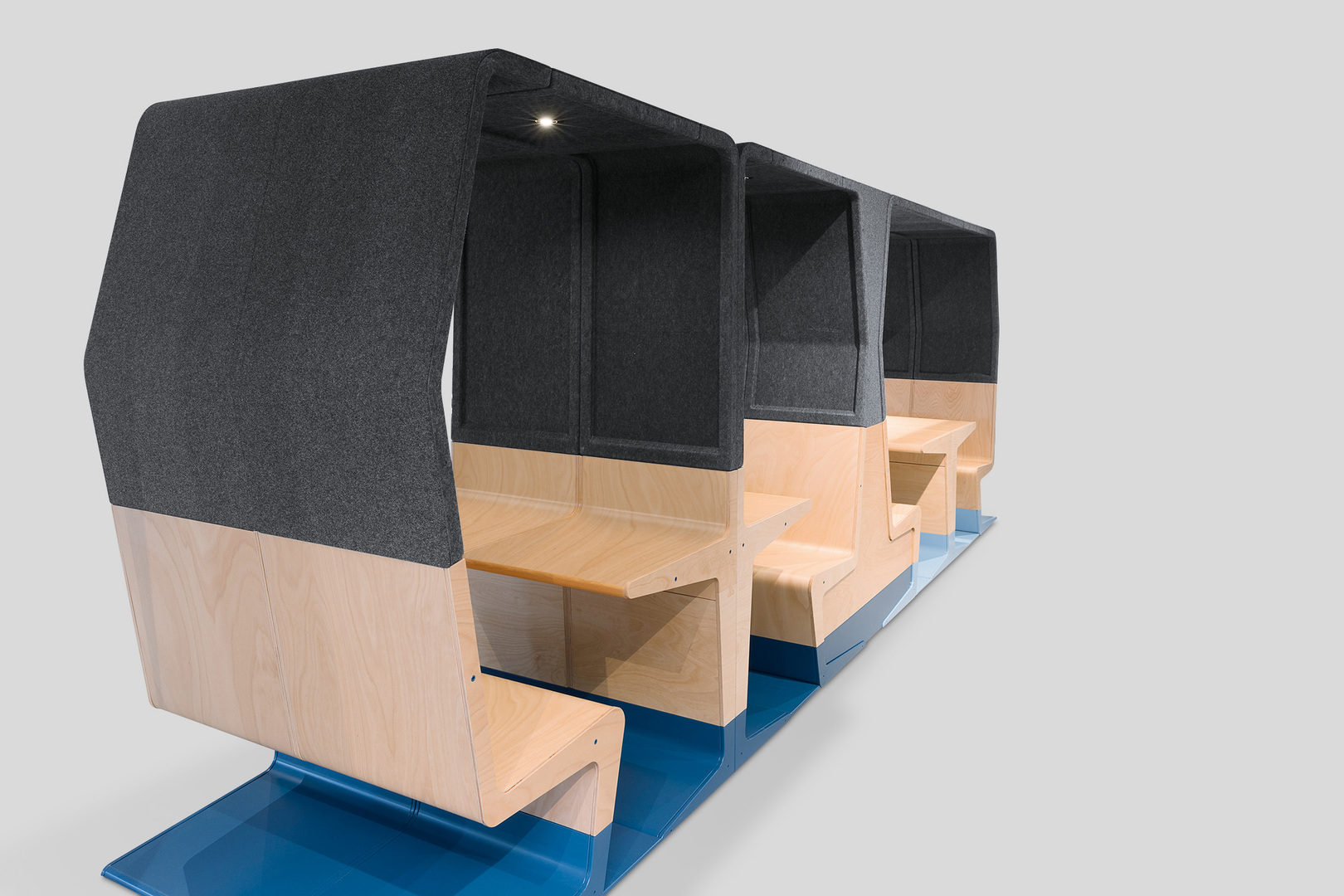 Das modulare Möbelsystem Hubb ermöglicht die Gestaltung dynamischer Arbeits- und Studienumgebungen, in denen eine Vielzahl an Aktivitäten gleichzeitig stattfinden kann. Nur wenige der geradlinig geformten Elemente reichen aus, um eine Vielzahl an Kombinationen umzusetzen. Aus Stahl, Buchenholz und PET-Filz gefertigt, bietet Hubb eine nachhaltige, zukunftsorientierte Einrichtungslösung, die immer wieder flexibel angepasst werden kann, um neuen Anforderungen gerecht zu werden.