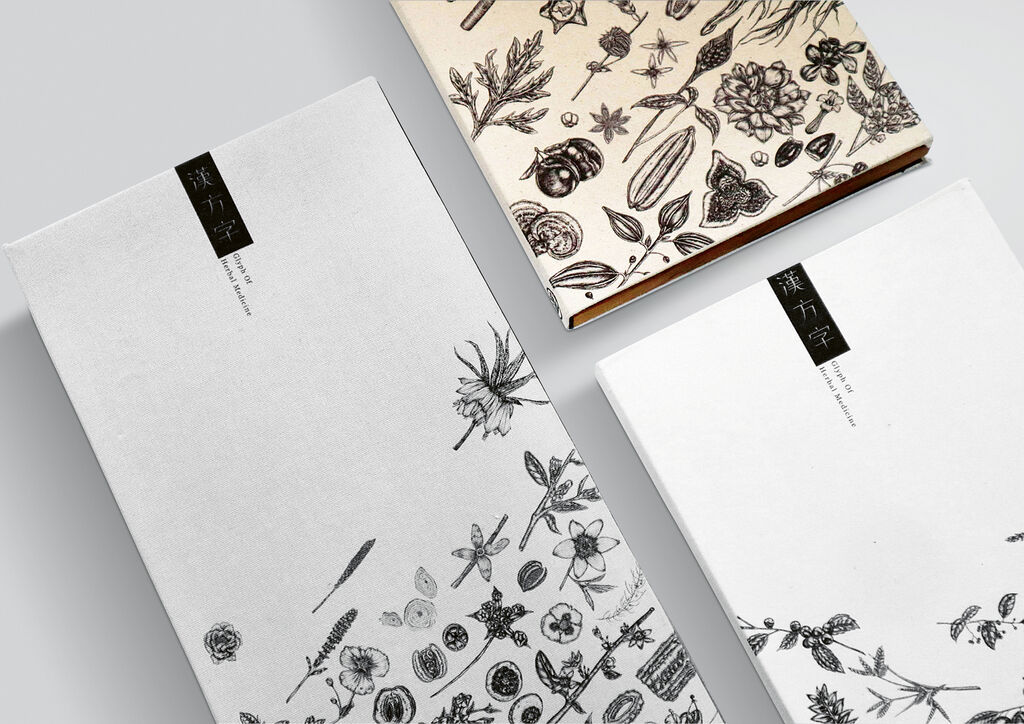 Chinese characters are made up of various strokes similar to how herbal medicines comprise various ingredients. The three thread-sewn books provide an introduction to 108 ingredients used in herbal medicine and use their properties to create a complete set of Chinese words. The finely drawn illustrations show the structure of the ingredients. The font design is based on the roots of the plants. It incorporates the features, colours and uses of each ingredient to create “Glyph of Herbal Medicine”, where you can find the right cure by simply looking at the words.