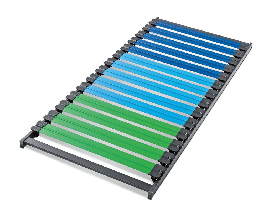 Hinter Goodside 3in1 verbirgt sich eine Unterfederung aus glasfaserverstärkten Kunststoffleisten. Diese federn den Körper an jeder Stelle einwandfrei ab, ohne dass er zu tief einsinkt. Unabhängig von den Körperproportionen wird der Rücken in jeder Position sehr gut unterstützt. Die verwendeten Materialien garantieren Langlebigkeit und gleichbleibende Elastizität. Die Leisten sind in verschiedenen Härtegraden erhältlich, welche durch unterschiedliche Farben gekennzeichnet sind. Je nach Anordnung kann der Nutzer zwischen den Härtegraden hart, mittel oder weich wählen.