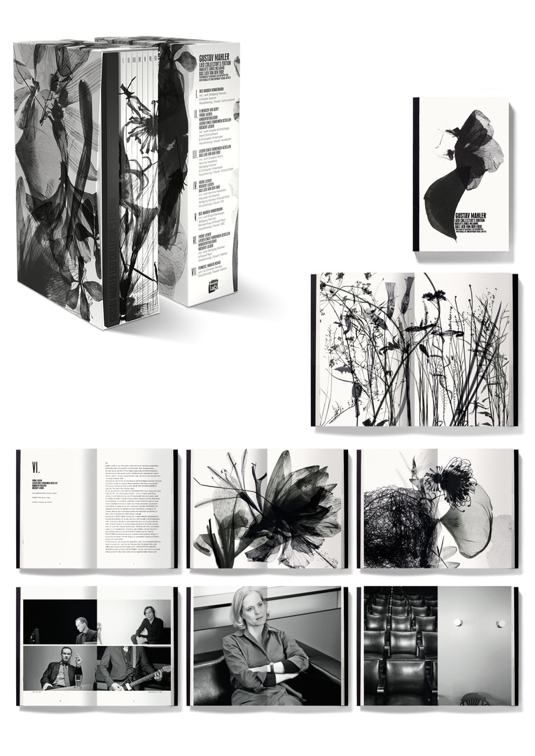 In 2011, the Gustav Mahler Festival brought together professional classic singing with electronic visualisation and, through the combination of classic music and digital moving images, created a new form of artistic expression, bringing classic music closer to people. The audio-visual results of this experiment are documented in two different media: seven DVDs and a book. Mahler’s source of inspiration, nature, also inspired the opulent, abstract floral collages, which, exclusively in black-and-white, run throughout the entire design, echoing the essential quality of musical composition: compression and emotion, drama and reduction. The aesthetics of “colourlessness” additionally provides space for the imagery of the artists and for the music. Featuring the same reduced design, a book with selected texts, a detailed backstage photo gallery with portraits of the artists and numerous production details complement this edition in a slipcase. Statement by the jury »This work presents a fantastic visual solution for a DVD edition. With extraordinary images of plants, it arouses curiosity, puzzles and thus involves recipients. The different photo series and the austere and calm layout combine in a highly unexpected, innovative and sensitive manner with the music of Gustav Mahler.«