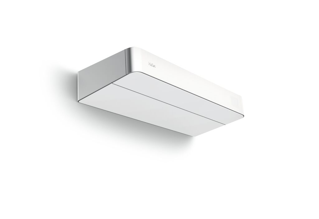 Der Luftein- und -auslass befindet sich bei dieser Klimaanlage an der Unterseite, sodass sie direkt unter einer Decke installiert werden kann. Wenn das Gerät eingeschaltet wird, klappen die beiden Scheiben an der Unterseite wie Schmetterlingsflügel auseinander, was ein neues Nutzungserlebnis ermöglicht. Da die Oberseite des Aluminiumgehäuses geschlossen ist, kann kein Staub in das Innere eindringen. Außerdem lässt sich die glatte, antibakterielle Oberfläche leicht abwischen.