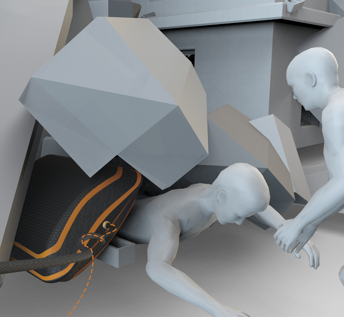 Borrowing the idea from automobile safety air bags, the air bag of this Handheld Air Bag Jack can be used to support the heavy weight of debris without using large machinery, thus achieving rapid relief for victims at least in the more shallow layers of the debris. When not in use, the air bag wraps around the handle for convenient storage and the user will need to unlock the button and expand it to start using. Simply unlock the button and the air bag will emerge in a half-folded state. Fully expanded, it grows into the size of a pillow, but can easily jack tons of weight.