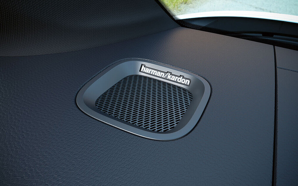Das Harman Kardon-Soundsystem für den VW ID. Buzz kombiniert Elemente des Volkswagen-Designs mit der Formensprache Harman Kardons. Der mit den Produkten dieses Herstellers vertraute Kunde erkennt sofort die Ähnlichkeit zum Audiosystem des Fahrzeugs. Der Jury gefiel, wie sich die Lautsprecher nahtlos in die Innenraumgestaltung einfügen. Die Metall-Lautsprechergitter links und rechts am Armaturenbrett sind für eine Verbesserung der Klangqualität so nahe wie möglich an den Lautsprechern positioniert, und das Logo ist so platziert, dass es von beiden Vordersitzen aus sichtbar ist. Das 60-Grad-Strichmuster der Lautsprechergitter ist an den Schrägstrich im Markenlogo „Harman/Kardon“ angelehnt.