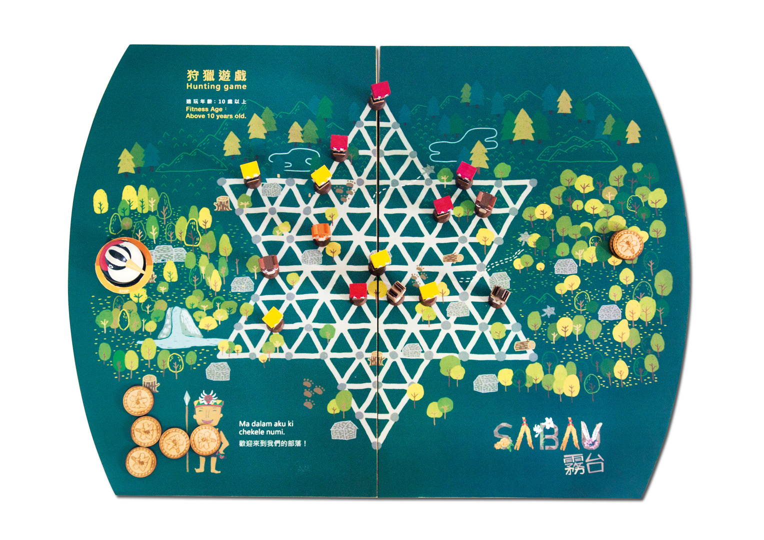 Using hunting as an example, this board game provides information about the culture of the Taiwanese tribe of the Rukai. Their tradition to work together cooperatively and not fight each other is a requirement for winning this game. Hello Sabau! – Sabau is a greeting – gives indigenous children an understanding of their own tradition and tourists the opportunity to learn a great deal about the local culture. This includes knowledge of Taiwanese resources and myths, and the respect for nature. The lovingly designed board and pieces come in a wooden box.