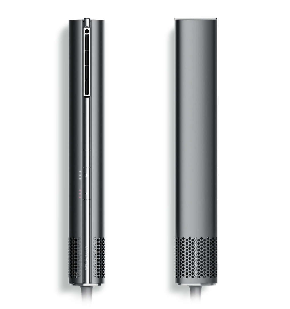 Mit seiner schlanken I-Form ist dieser Haartrockner minimalistisch gestaltet. Für mehr Effizienz und einen besonders geräuscharmen Betrieb tritt der Luftstrom in einem 136-Grad-Winkel aus dem Korpus aus. Da der Motor nah am Griff platziert ist, ist der Gerätekopf leicht und einfach zu handhaben. Der Haartrockner ist mit einer Wasserionenfunktion ausgestattet, wodurch er das Haar nicht nur rasch trocknet, sondern ihm gleichzeitig Feuchtigkeit spendet.