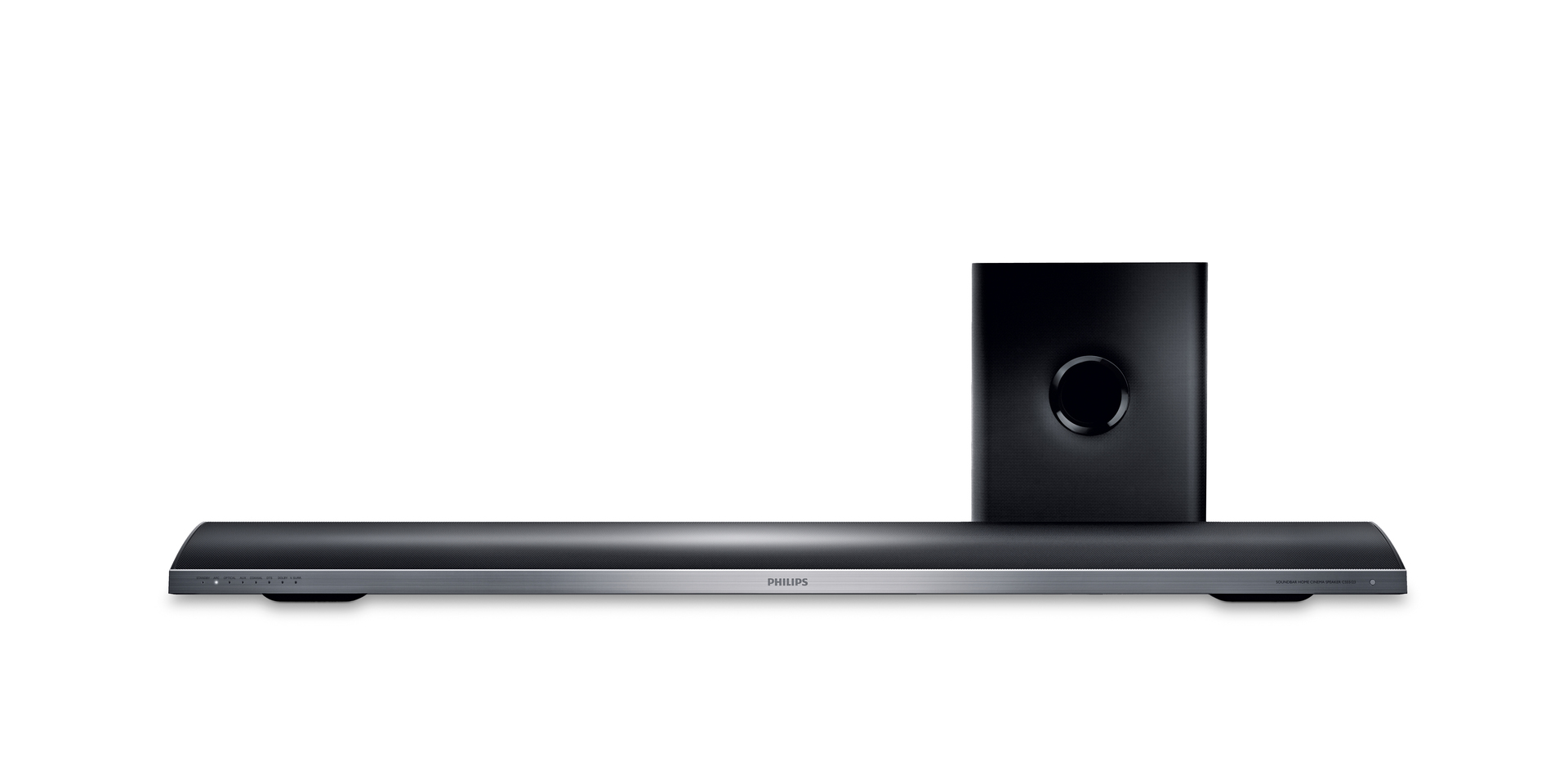 Da die Soundbar sehr schlank gestaltet ist, findet sie unauffällig vor einem Fernseher Platz, ohne das Bild zu beeinträchtigen. Auch die elegant anmutende Aluminiumausführung gefällt.