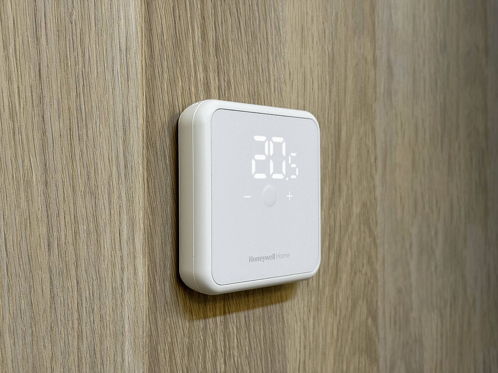 Honeywell Home DT4 ist ein Thermostat mit flachem Gehäuse und abgerundeten Kanten. Über ein Leuchtdisplay lassen sich die Temperatur steuern und der Status einsehen. Die Benutzeroberfläche ist intuitiv bedienbar. Das Gerät ist für On/Off- und OpenTherm-kompatible Heiz- und Kühlgeräte wie Heizkessel, Wärmepumpen und Fernwärmeanlagen konzipiert. Dank einer kabelgebundenen sowie einer kabellosen Variante eignet sich das Thermostat für verschiedene Systemanwendungen.