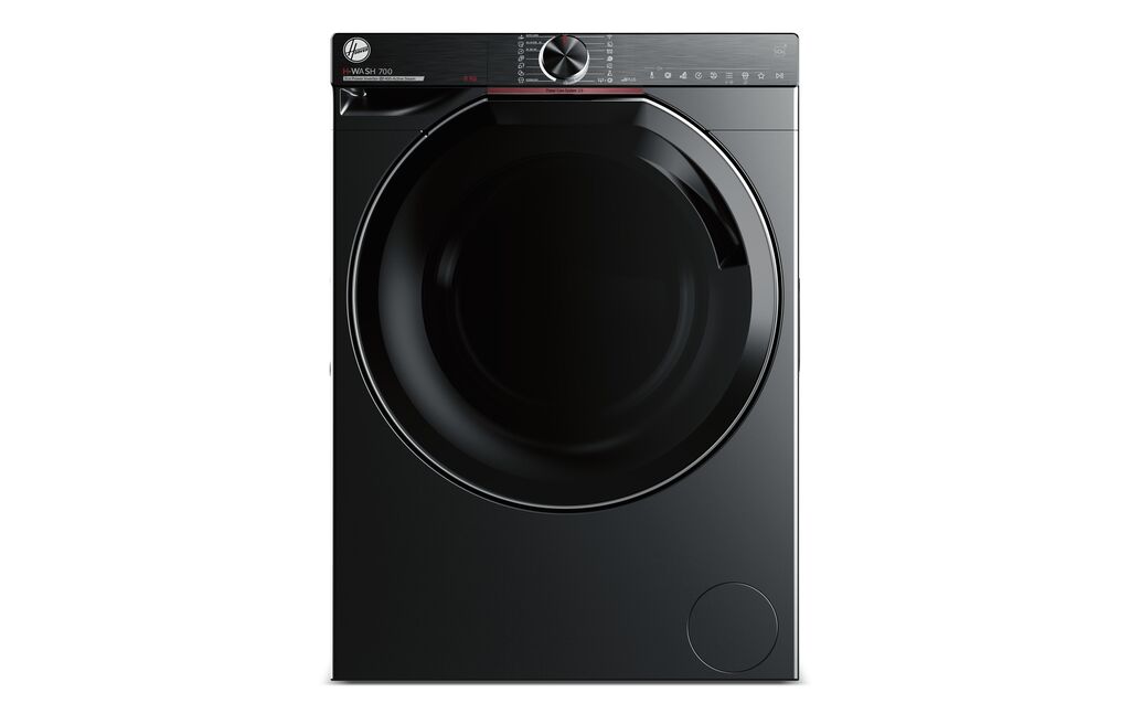 Das robuste Erscheinungsbild der HOOVER H-700 Waschmaschine basiert auf hochwertigen Materialien sowie markanten Gestaltungsdetails. So schließt das Bullauge direkt unter dem Bedienfeld ab und unterbricht an dieser Stelle dessen runde Form. Rote Akzente frischen den schwarzen Korpus auf und verleihen dem Gerät eine eigenständige Formsprache. Das ergonomisch geneigte Kontrollfeld mit Drehwahlschalter und übersichtlich angeordneten Funktionstasten sorgt für eine komfortable Bedienung.