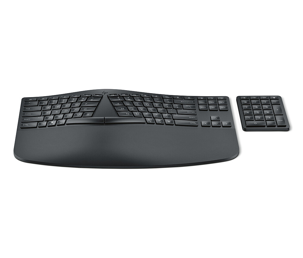 Ergonomische Aspekte berücksichtigt das HP 960 Ergonomic Wireless Keyboard in vorbildlicher Weise. Das separate Ziffernfeld ist dabei besonders hervorzuheben.
